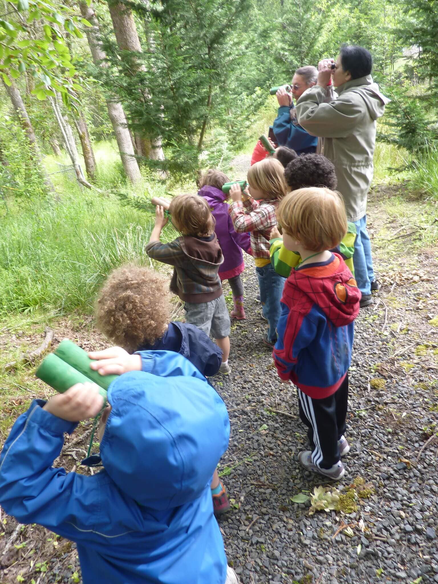 Children engage in outdoor play or go on a nature walk.