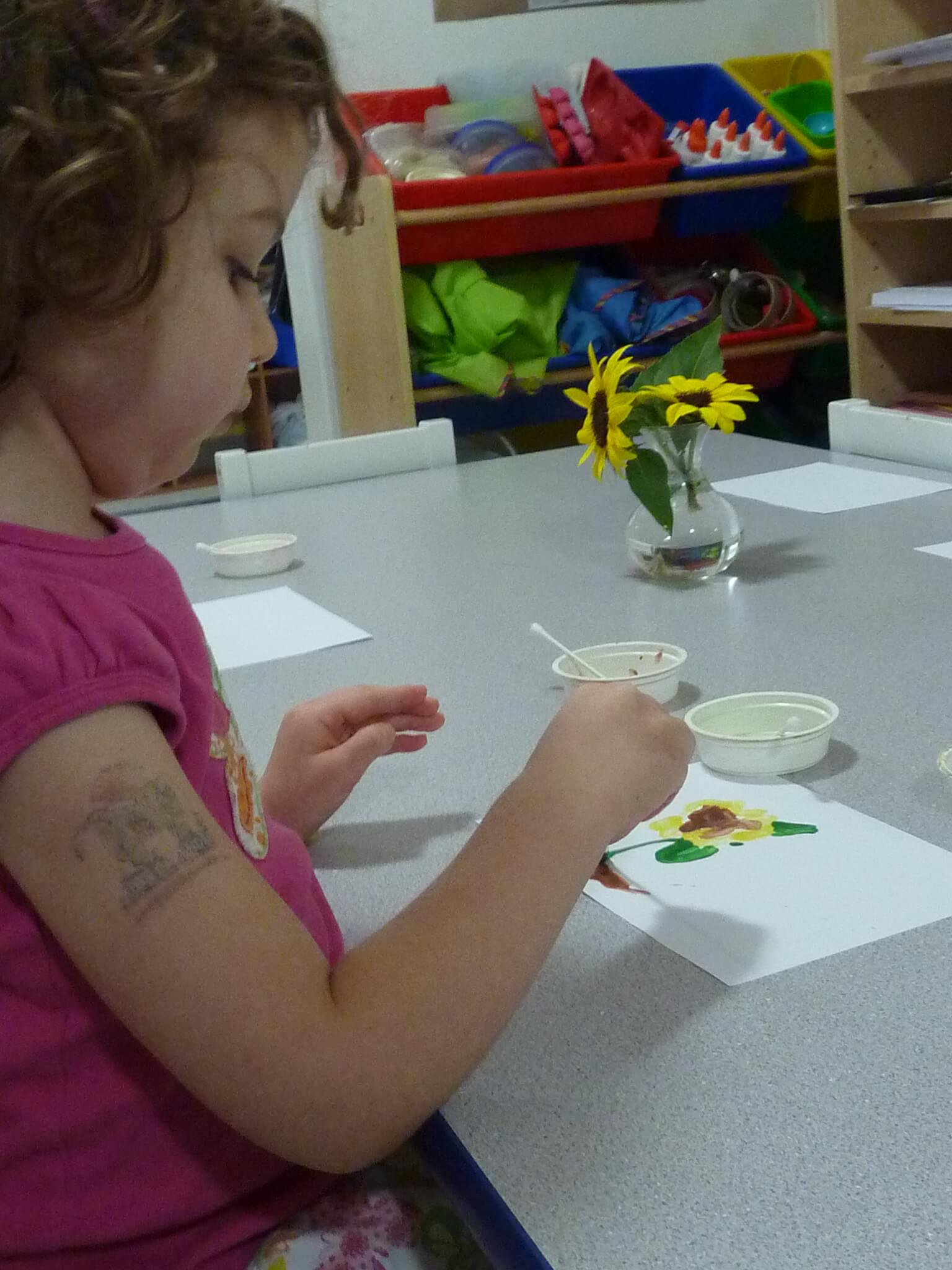 Children are finished with their lunches and during this time we have a teacher's choice. Teachers engage children in different indoor or outdoor activities such as: play writing, story telling, project work or to take a walk.